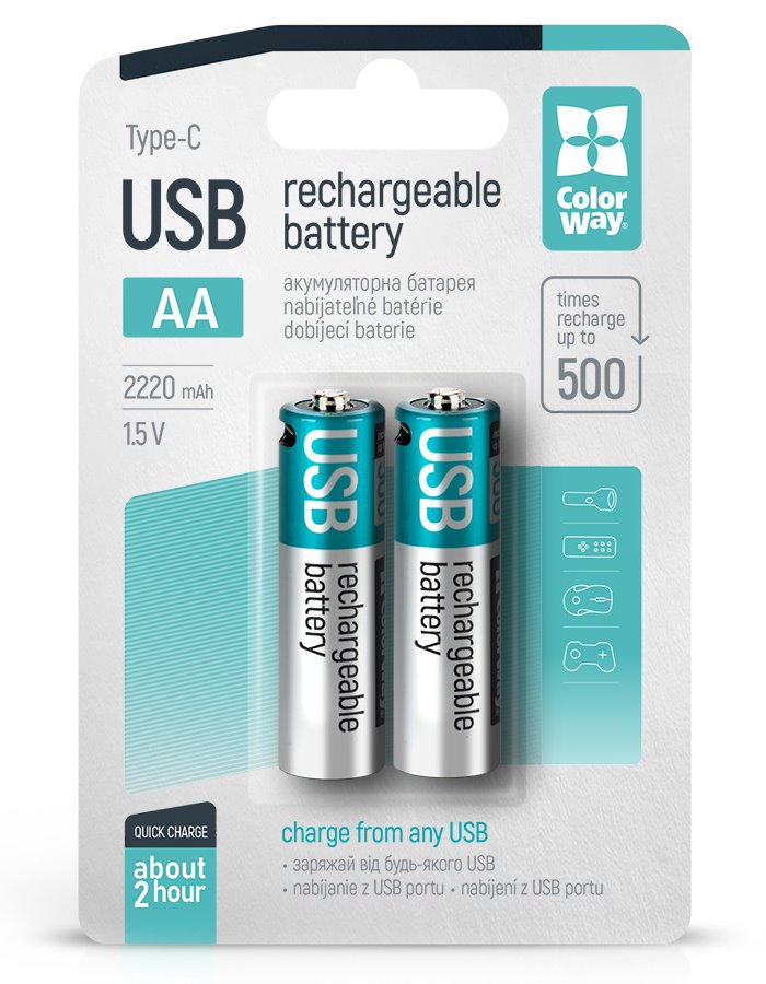 Podporují až 500 dobíjecích cyklů, takže nahradí stovky kusů baterií, pro které byste museli jít do obchodu. V souvislosti s tím šetříte nejen čas, ale také peníze a životní prostředí. Hlavní předností ColorWay AA baterií je možnost nabíjení přes jakékoli zařízení s USB portem. Baterii stačí jednoduše připojit k USB portu v PC nebo notebooku a za 1 až 2 hodiny jsou baterie plně připraveny k provozu.