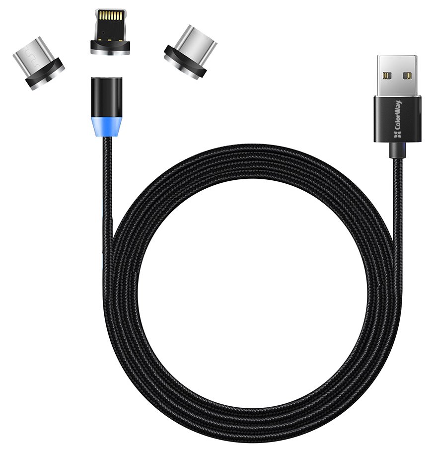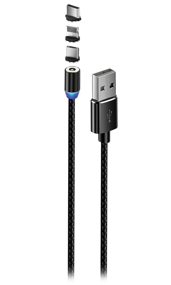 Magnetický nabíjecí kabel 3v1 je vysoce kvalitní kabel s funkcí otáčení o 360° pro nabíjení vašeho telefonu, tabletu nebo jiných elektronických zařízení, která mají konektory Lightning, microUSB, nebo USB typ C. Kabel rychle nabije potřebné zařízení, má spolehlivý a výkonný magnet a také LED indikátor. Z vnější strany je pokryt vrstvou nylonového povlaku, což ztěžuje jeho ohýbání nebo poškození.