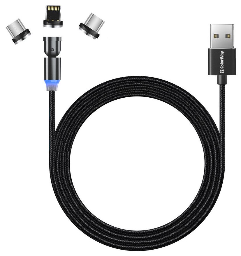 Magnetický nabíjecí kabel 3v1 je vysoce kvalitní kabel s funkcí otáčení o 540° pro nabíjení vašeho telefonu, tabletu nebo jiných elektronických zařízení, která mají konektory Lightning, microUSB, nebo USB typ C. Kabel rychle nabije potřebné zařízení, má spolehlivý a výkonný magnet a také LED indikátor. Z vnější strany je pokryt vrstvou nylonového povlaku, což ztěžuje jeho ohýbání nebo poškození.