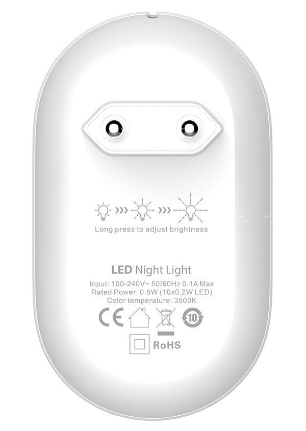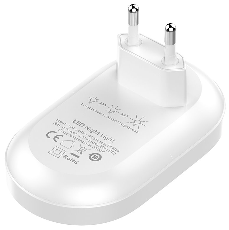 Noční LED světlo je ideální pro použití v dětských pokojích, chodbách, sklepech apod. Integrovaný senzor stmívání automaticky zapne/vypne světlo podle světelných podmínek v místnosti. Automaticky se přepne do režimu ultra nízké spotřeby, pokud se noční světlo nerozsvítí po dobu 5 sekund.