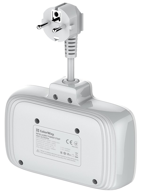 Kompaktní prodlužovací přívod se dvěma Schuko zásuvkami, třemi USB porty a jedním USB-C konektorem. Lze s ním tedy připojit nejen elektrické spotřebiče, ale současně nabíjet až čtyři mobilní zařízení z USB portů. Funkce Auto ID automaticky rozpozná typ připojeného zařízení a určí tak vhodný nabíjecí proud. Mezi podporované nabíjecí protokoly patří PD 2.0/3.0 PPS, Quick Charge 2.0/3.0, Apple Fast Charge, Huawei FCP, Samsung SFC/AFC a Xiaomi Turbo charge. Zásuvky a USB výstupy jsou vybaveny praktickým tlačítkem pro zapnutí a vypnutí. Tělo přívodu je vyrobeno ze žáruvzdorného plastu, který odolá teplotám až do 850 °C. Samozřejmostí je uzemnění a přepěťová ochrana.