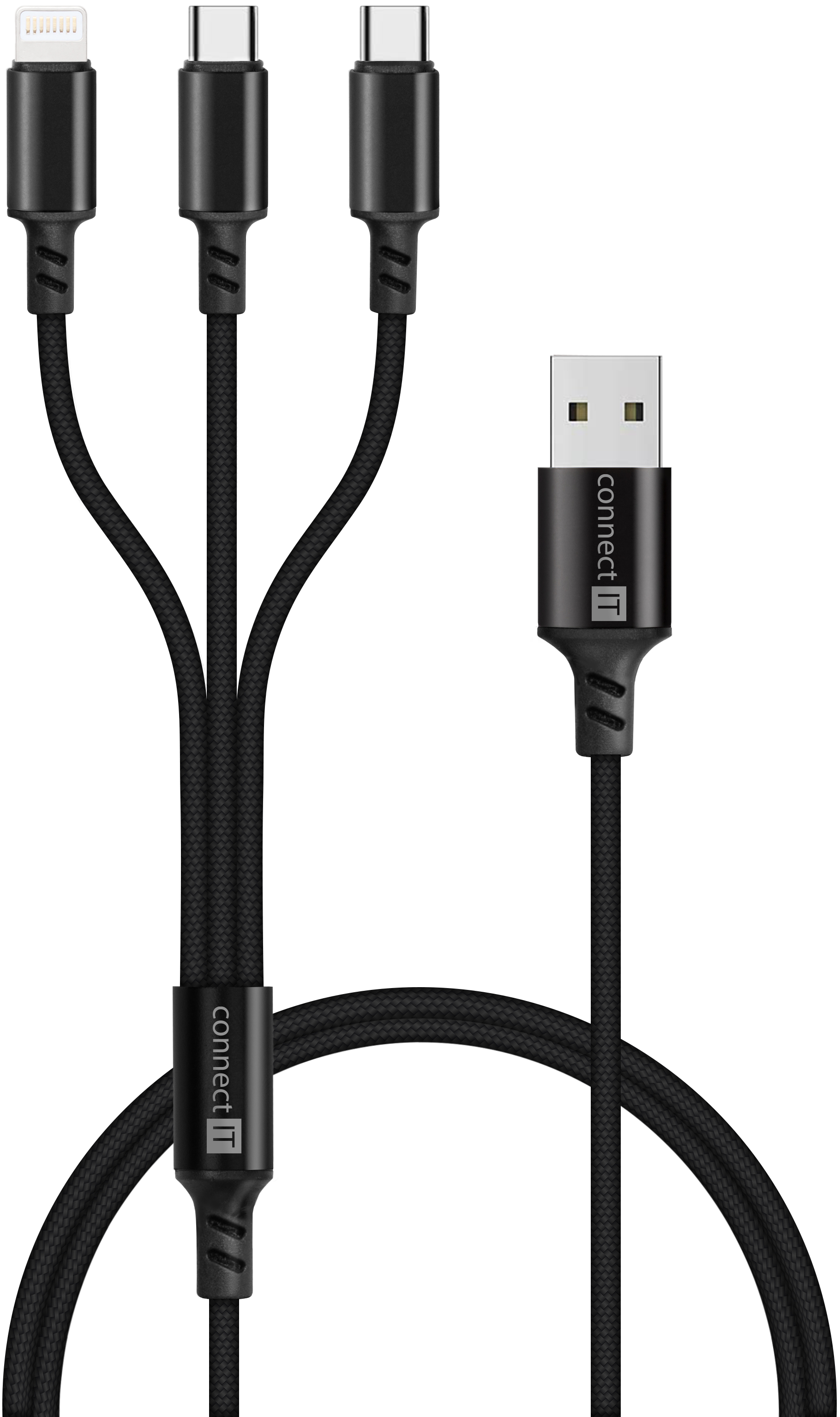 CONNECT IT Wirez 3in1 2x USB-C & 1x Lightning, 12 W, 1,2 m, ČERNÝ