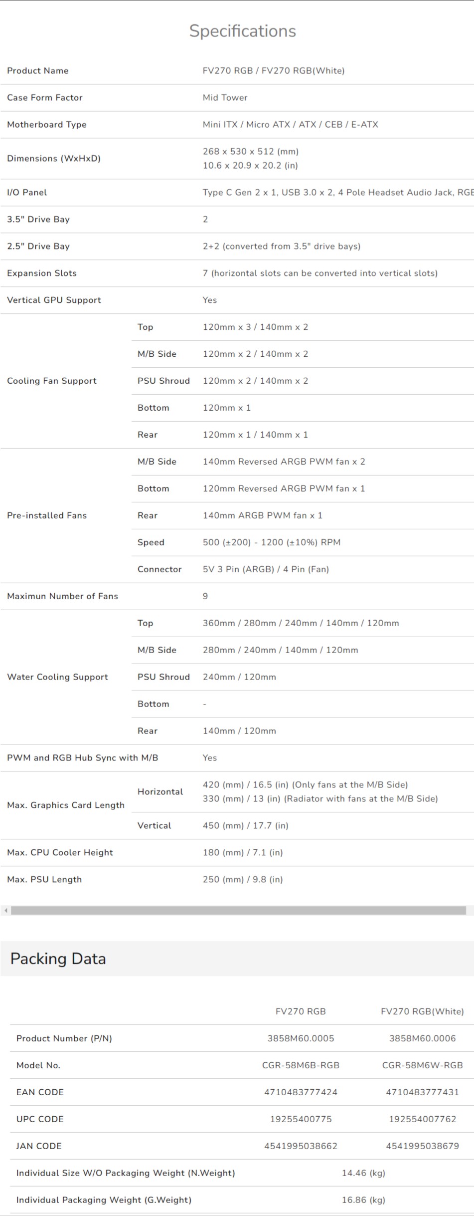 FV270 RGB. The clean exterior lets your components shine without