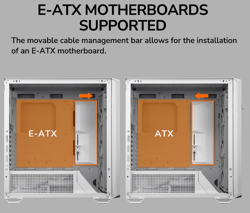 full-tower capacity, versatile GPU orientation, streamlines setup,