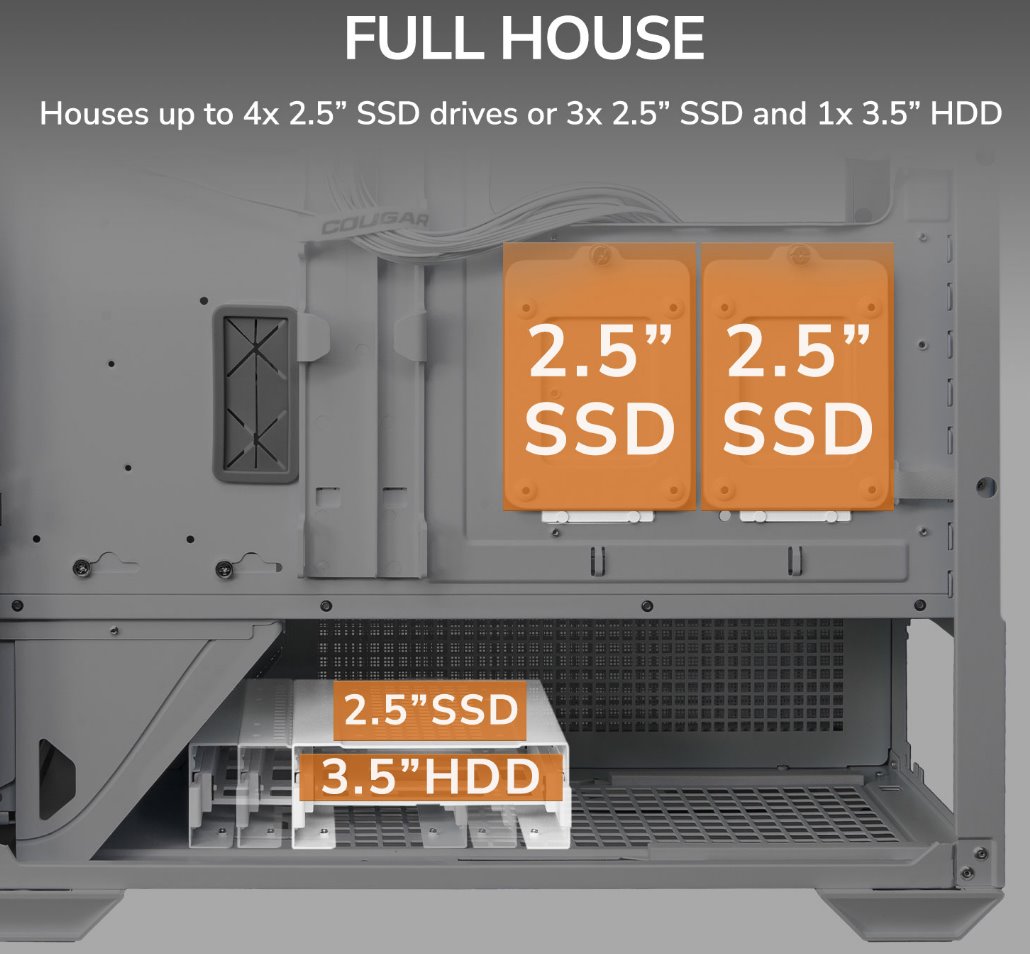 for system components, and an easily removable PSU cabin cover lets