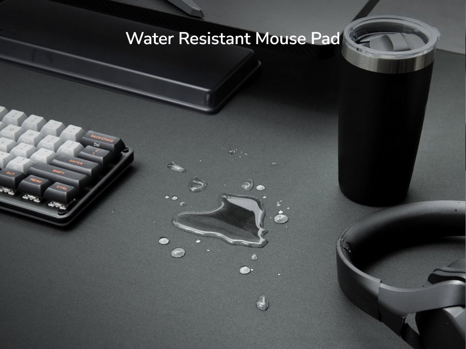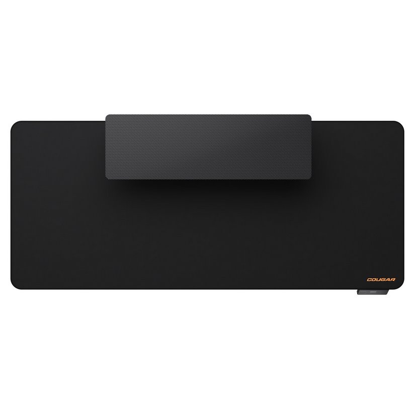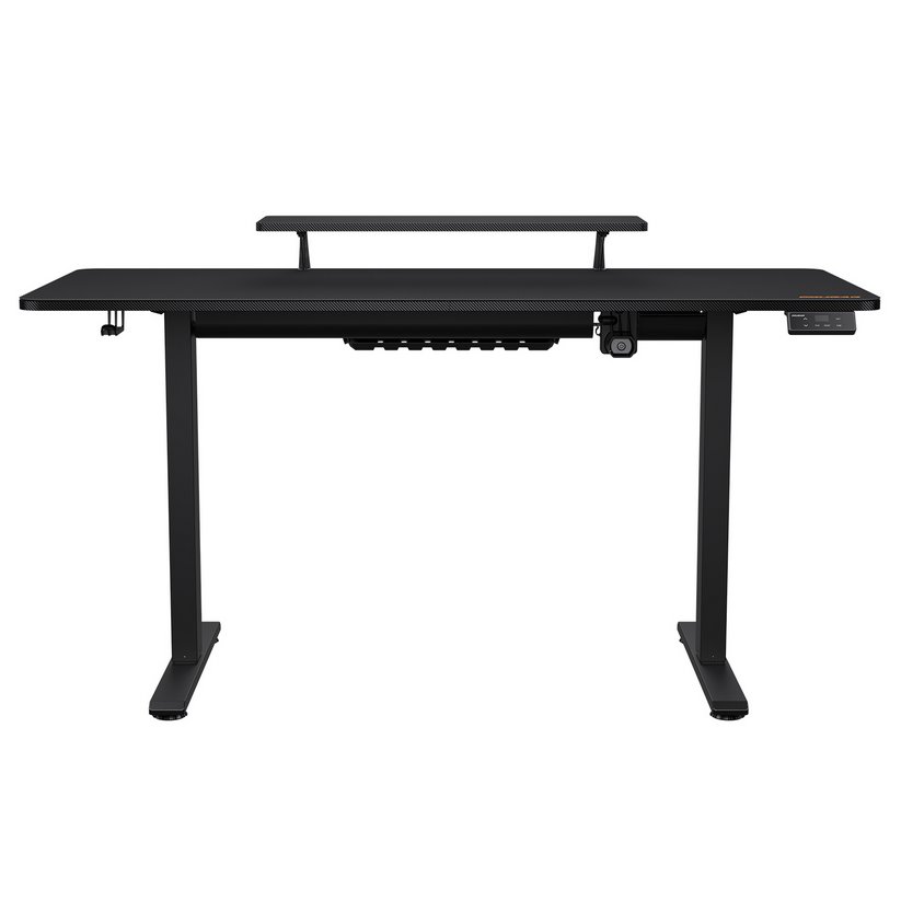 The carbon fiber-textured laminate gives the desk surface a sleek,