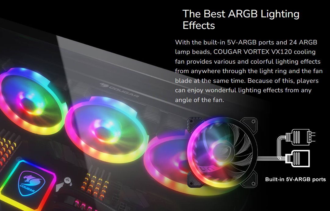 With the built-in 5V-ARGB ports and 24 ARGB lamp beads, COUGAR