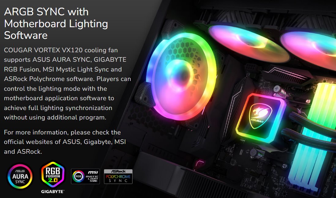 COUGAR VORTEX VX120 cooling fan supports ASUS AURA SYNC, GIGABYTE