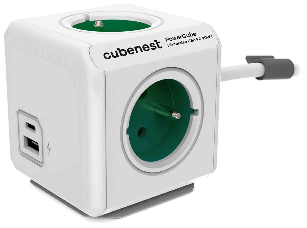 Cubenest PowerCube Extended je unikátní kombinací čtyř zásuvek, jednoho portu USB, jednoho USB-C a 1,5m prodlužovacího kabelu v kompaktním a stylovém těle pro nabíjení vašich zařízení. Technologie Power Delivery 3.0 nabízí inteligentní a rychlé nabíjení s automatickým přizpůsobením výkonu až do 20 W v režimech 5, 9 a 12 V. Promyšlené rozmístění zásuvek zajišťuje, že se nabíječky nebo objemné adaptéry navzájem neblokují. Samozřejmostí je tepelná, přepěťová, proudová a zkratová ochrana.