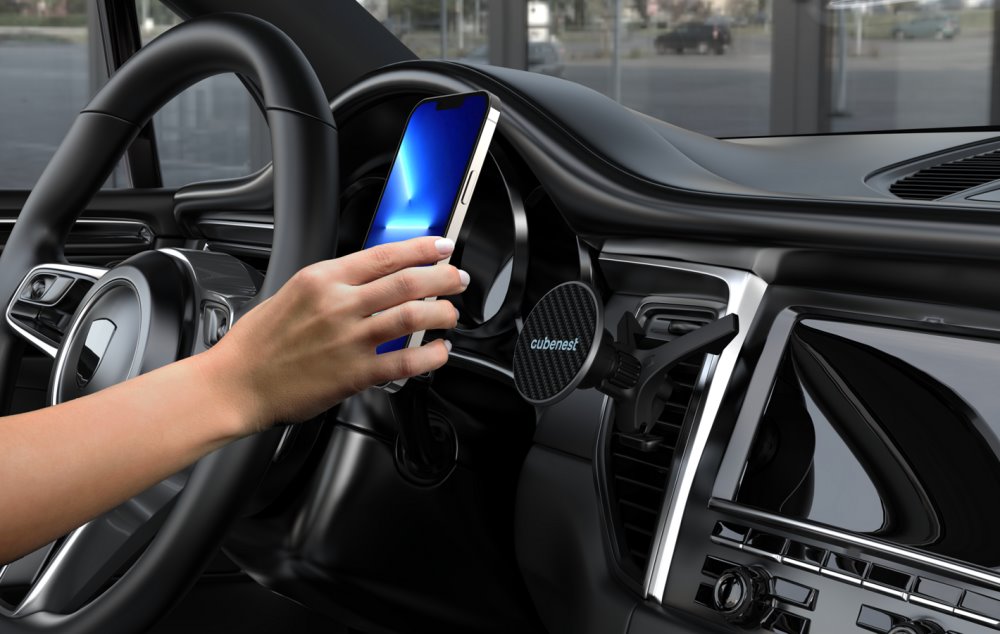 Držák do auta určený k upevnění do ventilační mřížky s podporou magnetického uchycení MagSafe.
