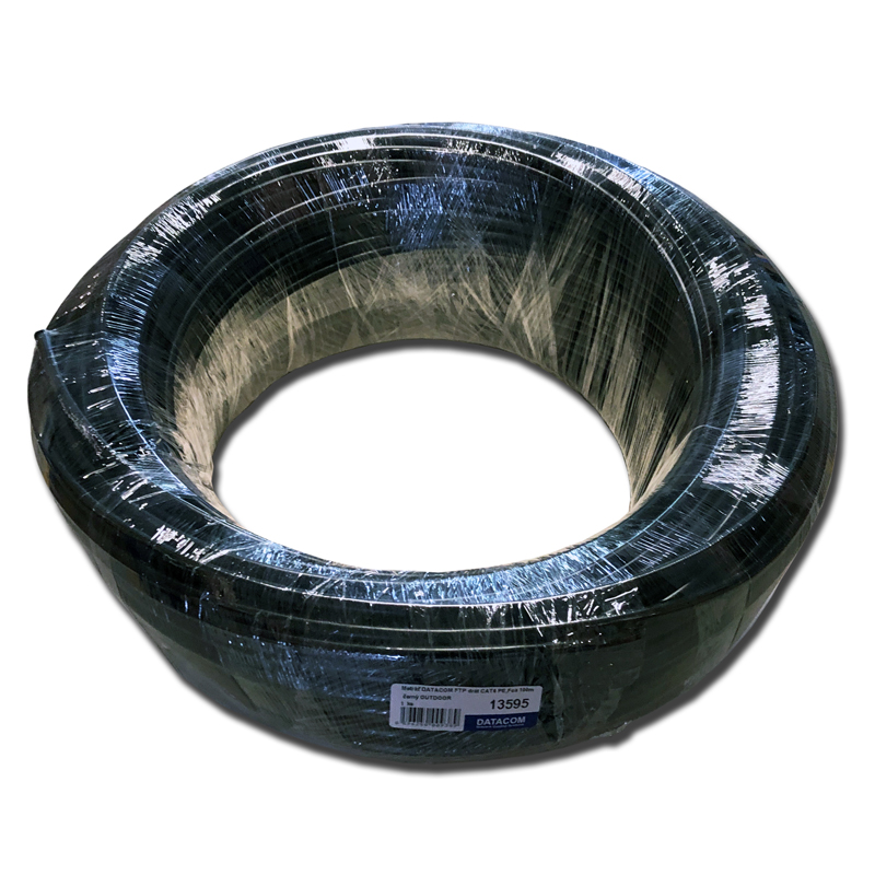DATACOM FTP drát CAT6 PE,Fca 100m návin černý OUTDOOR*cat.6 *třída E (250MHz) *4 x 2 x 23 AWG/1ProvedeníF/UTP *stínění jednotlivých párů: ne *stínění celkové: ano *typ
