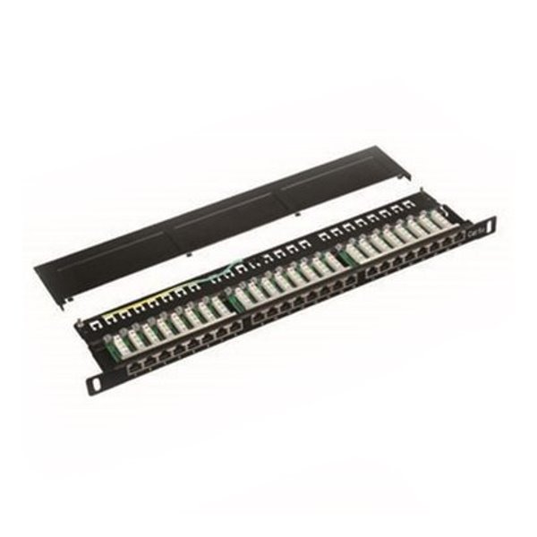Stíněný patch panel určený pro montáž do 19" datových rozvaděčů nabízí 3x8 pozic zářezového pole LSA s horním zářezem a 24 stíněných portů RJ45. Výška panelu je 1U a obsahuje vyvazovací lištu.