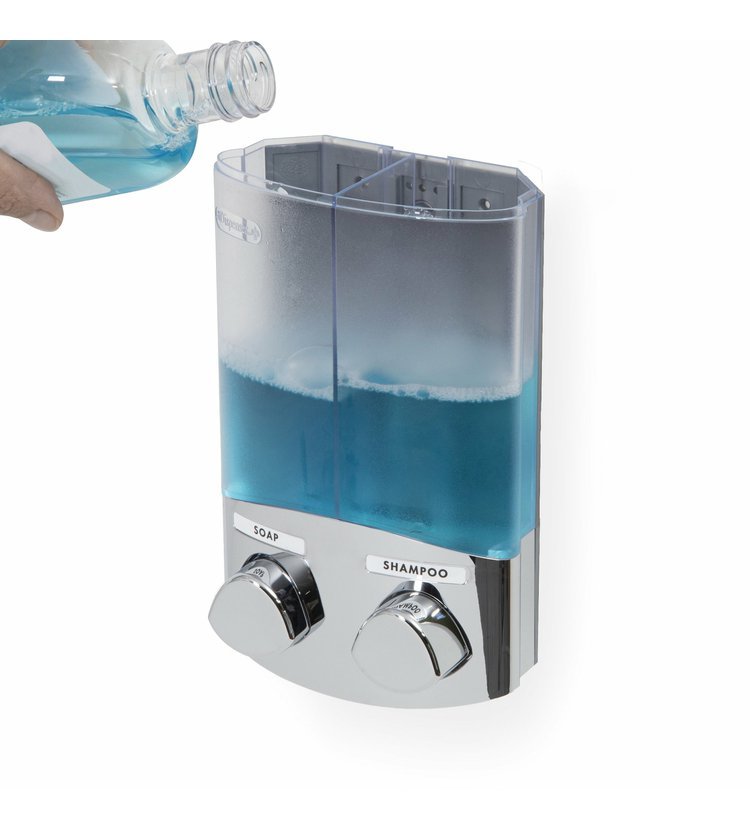 Dvojitý dávkovač mýdla, šampónu nebo desinfekce značky Compactor snadno připevníte na hladkou stěnu i bez vrtání. K přichycení na stěnu nepotřebujete žádné nářadí, jednoduše použijete voděodolnou lepicí pásku a silikonové lepidlo, které jsou již součástí balení. Díky tomu můžete dávkovač jednoduše přemístit podle potřeby.
