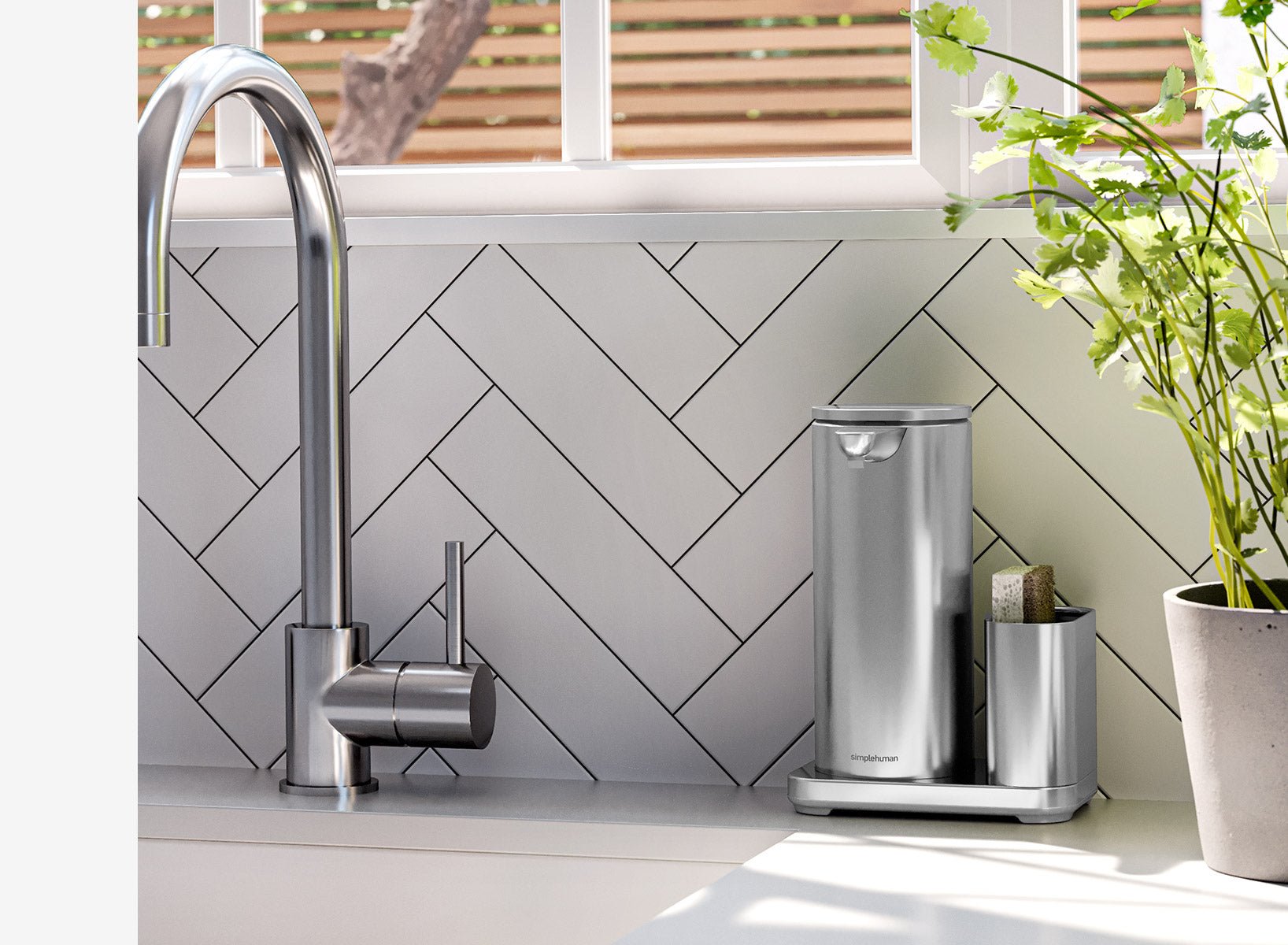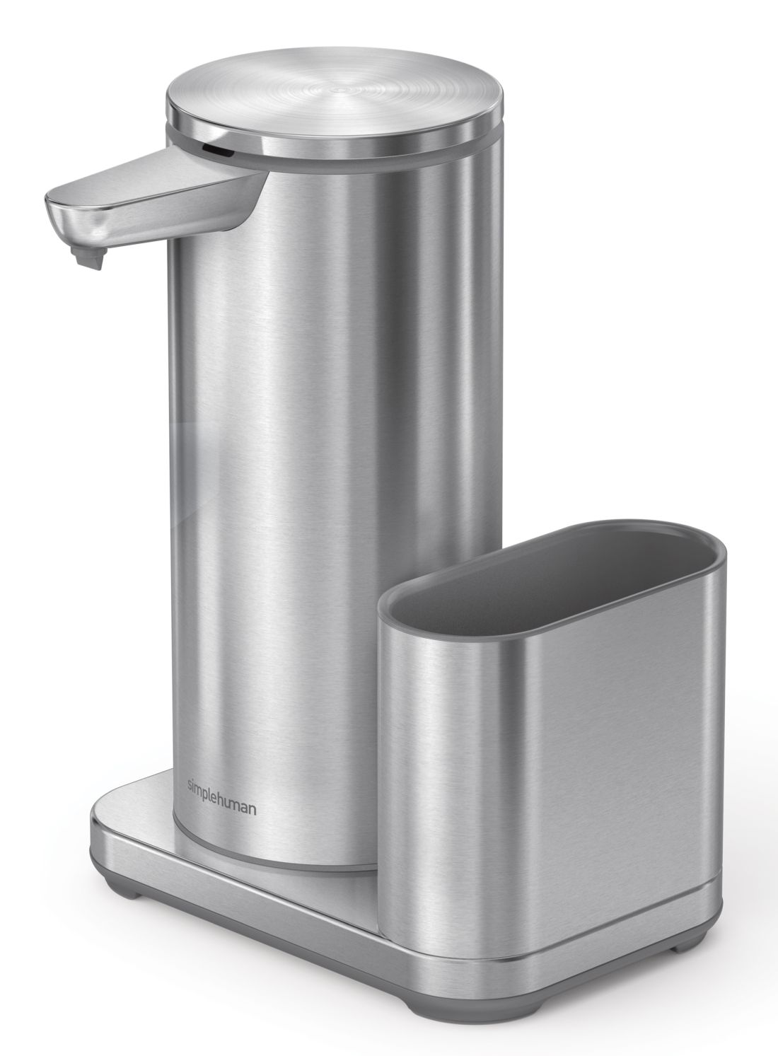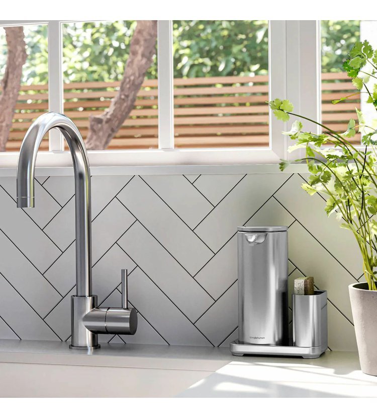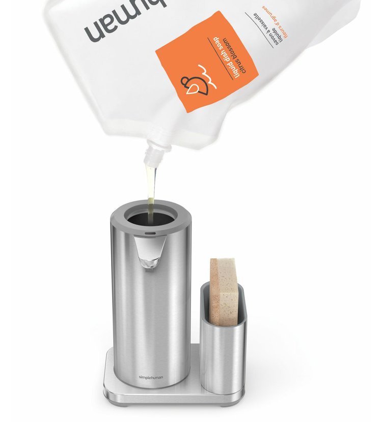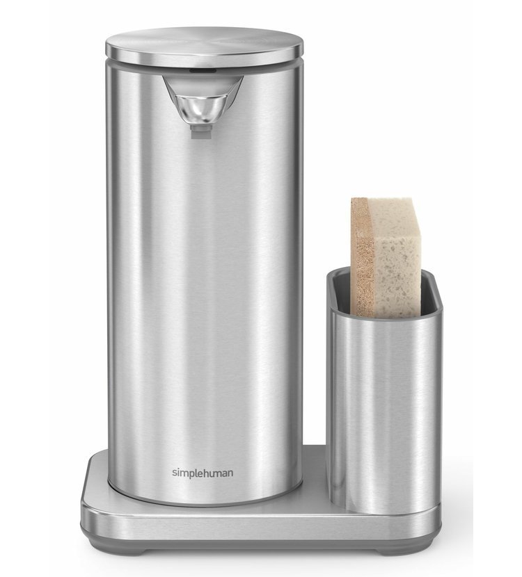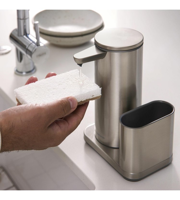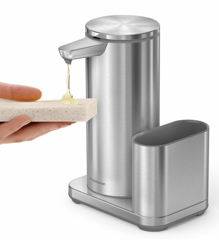 Senzorový dávkovač mýdla značky Simplehuman s nerezovým držákem na houbičku o objemu 414 ml zatočí v kuchyni či koupelně s bakteriemi. S tímto přístrojem již nemusíte sahat na kostku mýdla či klasický pumpovací typ. Prostě jen nastavte dlaň pod hubičku a senzor vám podá přesnou dávku mýdla.