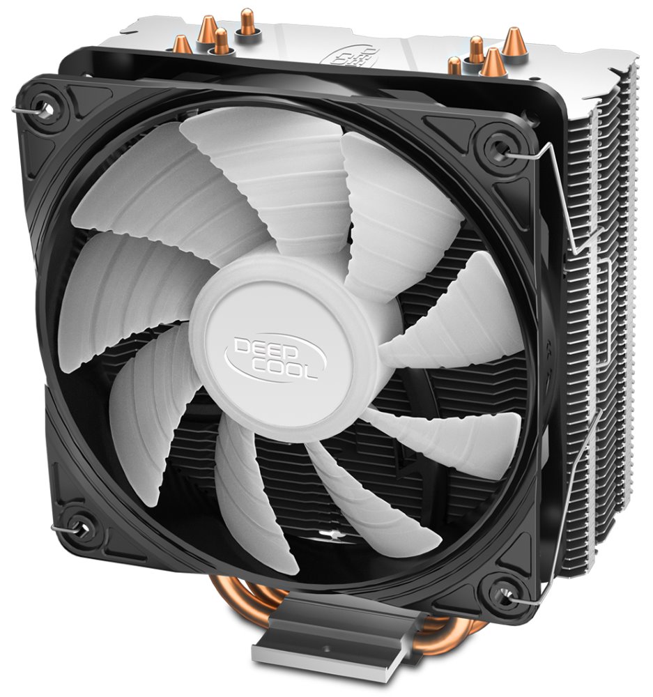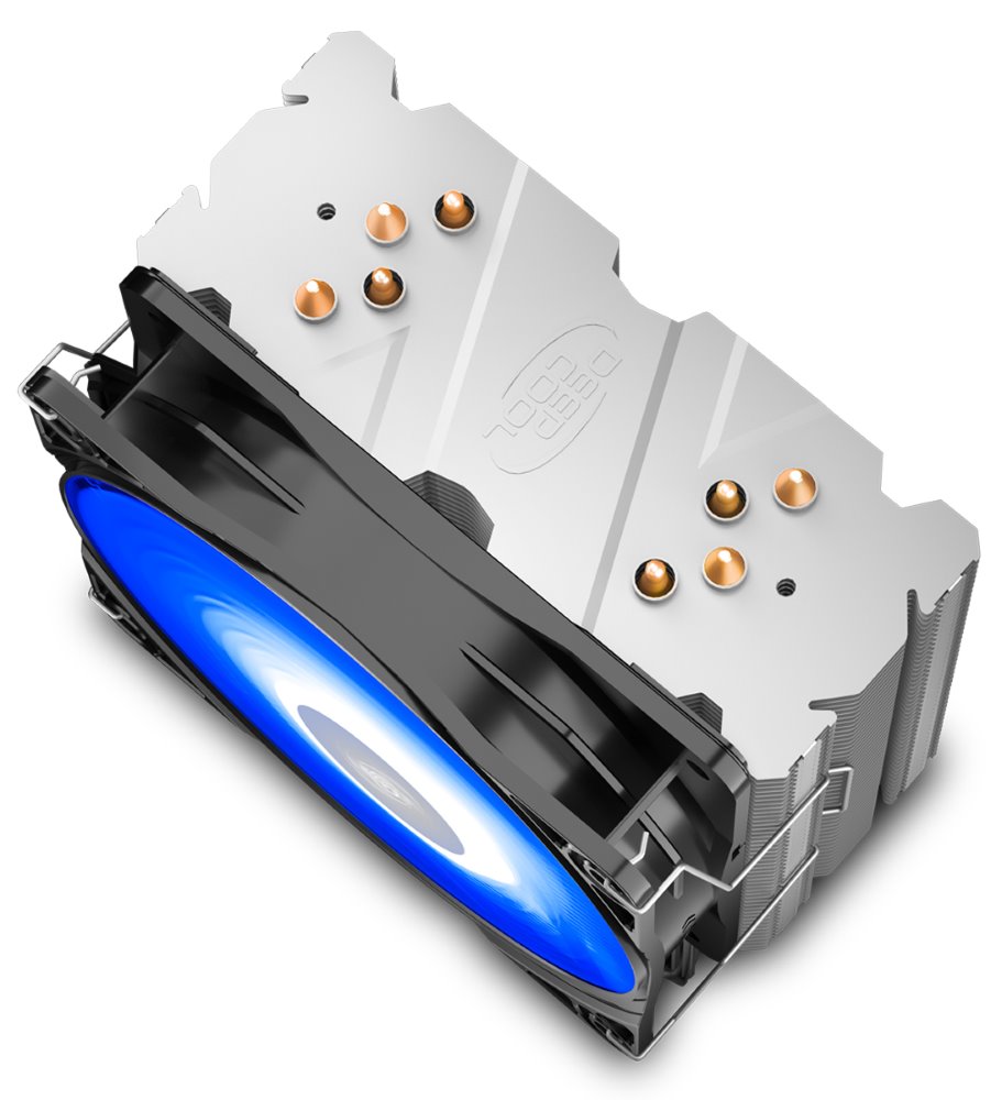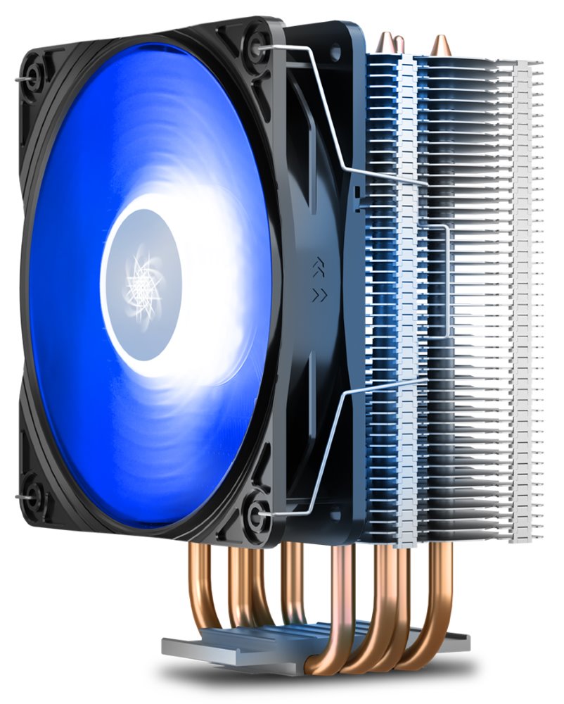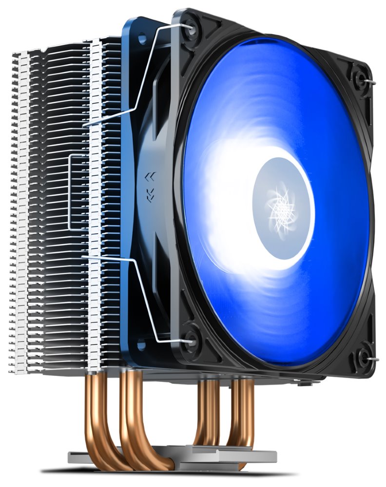 Chladič je vybaven modrým podsvícením, 4 heatpipe a 120 mm ventilátorem s PWM regulací. K připojení slouží 4-pin PWM konektor.