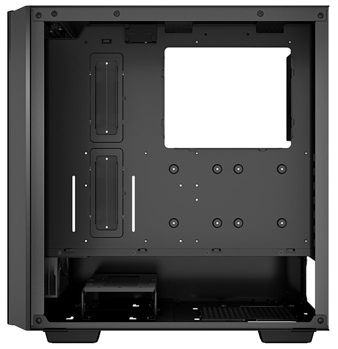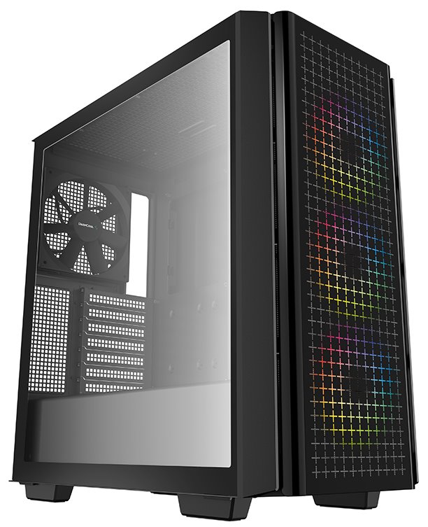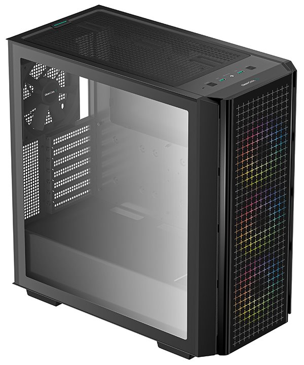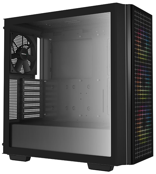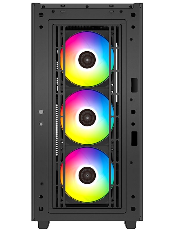 Skříň formátu Middle Tower s průhlednou bočnicí nabízí dvě 2,5" pozice pro SSD disky a dvě 3,5" pozice pro pevné disky. Na horním panelu se nachází dva USB 3.0 porty a kombinovaný port sluchátek a mikrofonu. Skříň je vybavena jedním 140 mm ventilátorem na zadní straně a třemi 120 mm ventilátory s ARGB podsvícením na přední straně. Důmyslné řešení umožňuje pohodlné umístění až 360 mm dlouhého výměníku vodního chlazení na přední straně. Ve skříni je dostatek prostoru pro chladič CPU do výšky až 175 mm a grafickou kartu o délce 380 mm. Skříň je dodávána bez zdroje. Součástí je také sada magnetických prachových filtrů.