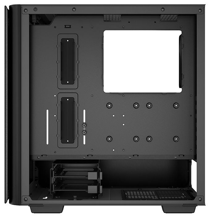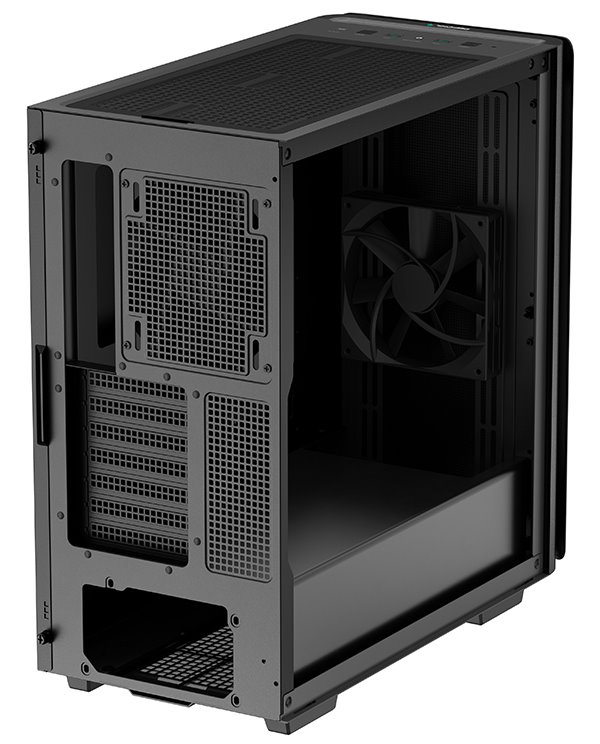 Skříň formátu Middle Tower s průhlednou bočnicí nabízí dvě 2,5" pozice pro SSD disky a dvě 3,5" pozice pro pevné disky. Na horním panelu se nachází dva USB 3.0 porty, jeden port USB typu C a kombinovaný port sluchátek a mikrofonu. Skříň je vybavena dvěma 140 mm ventilátory. Důmyslné řešení umožňuje pohodlné umístění až 360 mm dlouhého výměníku vodního chlazení na přední straně. Ve skříni je dostatek prostoru pro chladič CPU do výšky až 175 mm a grafickou kartu o délce 380 mm. Skříň je dodávána bez zdroje. Součástí je také sada prachových filtrů.