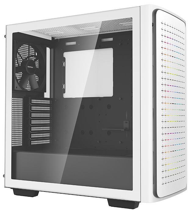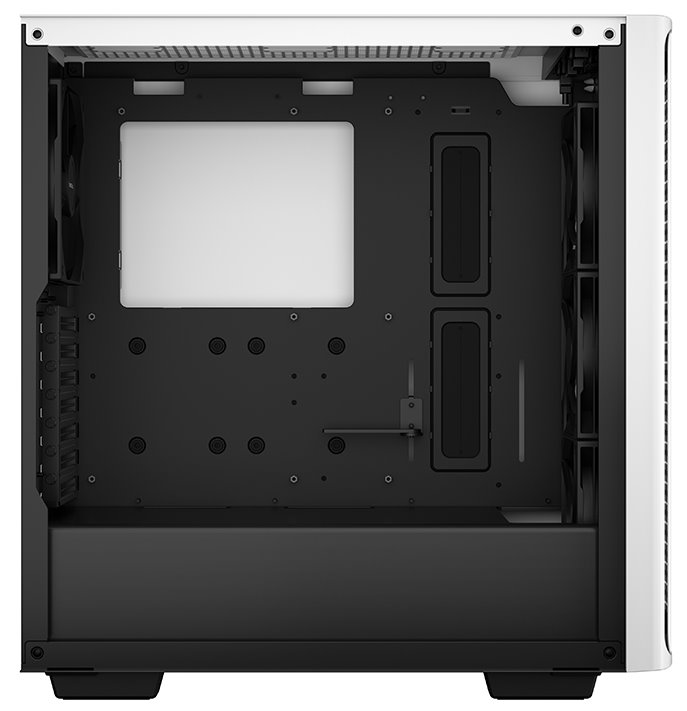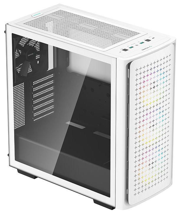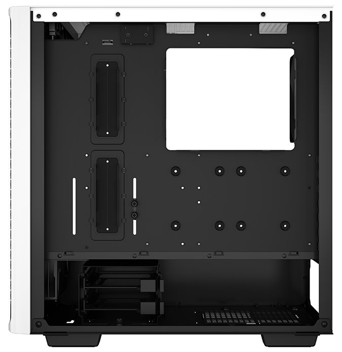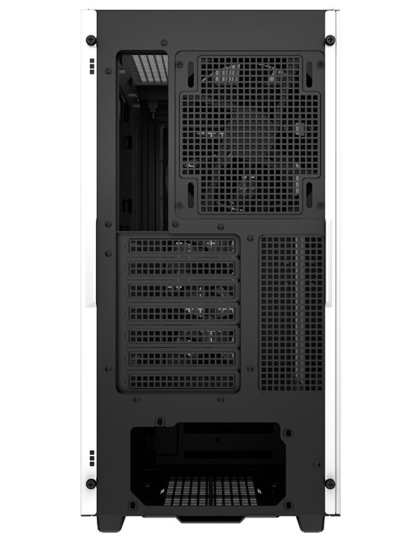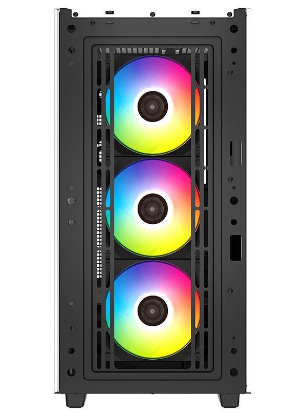 Skříň formátu Middle Tower s průhlednou bočnicí nabízí dvě 2,5" pozice pro SSD disky a dvě 3,5" pozice pro pevné disky. Na horním panelu se nachází dva USB 3.0 porty, jeden port USB typu C a kombinovaný port sluchátek a mikrofonu. Skříň je vybavena jedním 140 mm ventilátorem na zadní straně a třemi 120 mm ventilátory s ARGB podsvícením na přední straně. Důmyslné řešení umožňuje pohodlné umístění až 360 mm dlouhého výměníku vodního chlazení na přední straně. Ve skříni je dostatek prostoru pro chladič CPU do výšky až 175 mm a grafickou kartu o délce 380 mm. Skříň je dodávána bez zdroje. Součástí je také sada prachových filtrů.