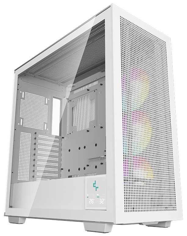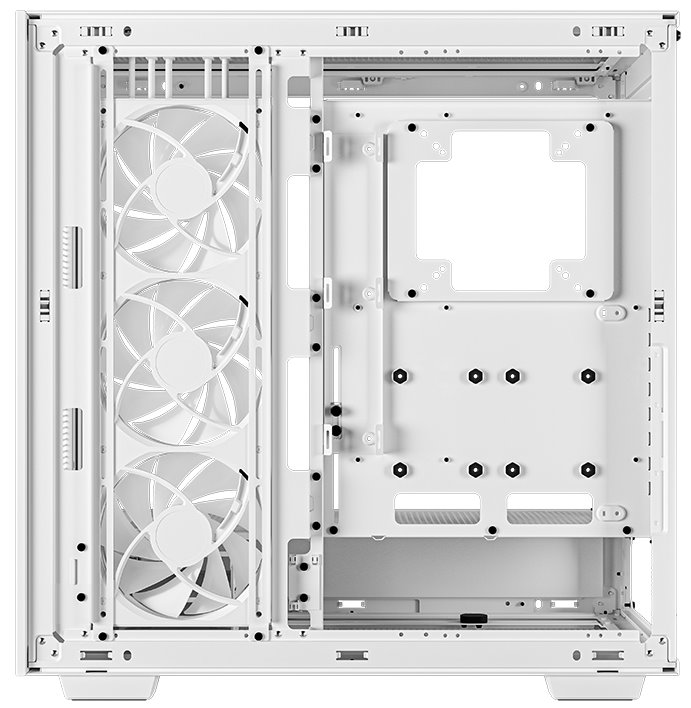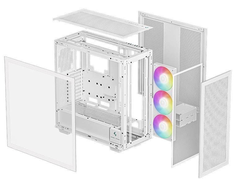 Skříň formátu Middle Tower s průhlednou bočnicí nabízí tři 2,5" pozice pro SSD disky a dvě 3,5" pozice pro pevné disky. Na horním panelu se nachází čtyři porty USB 3.0, jeden port USB-C, kombinovaný port sluchátek a mikrofonu a tlačítko na změnu LED podsvícení. Skříň je vybavena třemi 140 mm ventilátory s ARGB podsvícením. Důmyslné řešení umožňuje pohodlné umístění až 420 mm dlouhého výměníku vodního chlazení na přední, horní či boční straně. Ve skříni je dostatek prostoru pro chladič CPU do výšky až 132 mm a grafickou kartu o délce 480 mm. Zajisté potěší také digitální displej na boční straně, který umožňuje sledovat informace o kritických teplotách CPU nebo GPU. Skříň je dodávána bez zdroje.