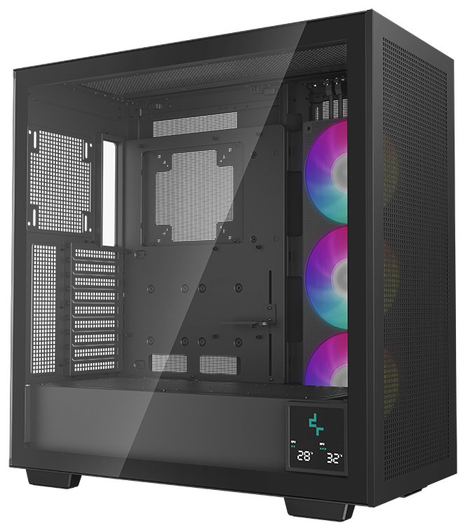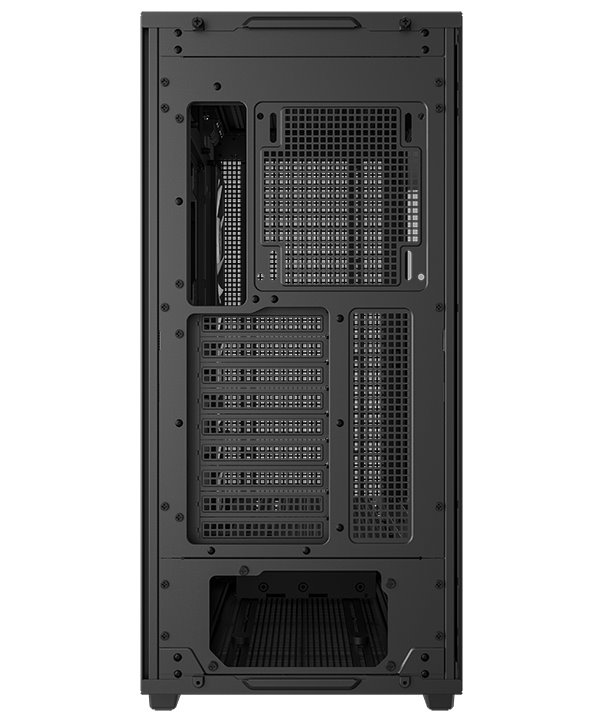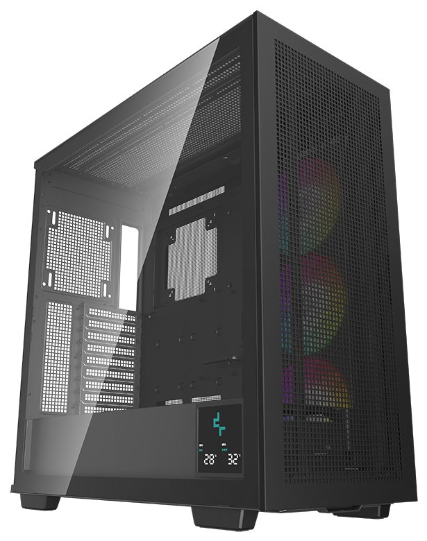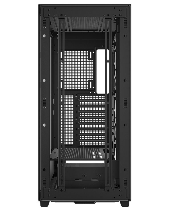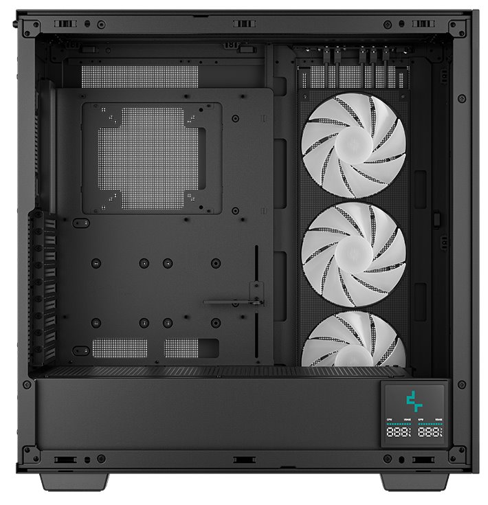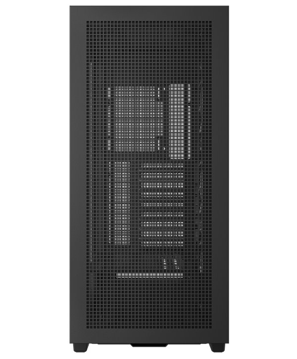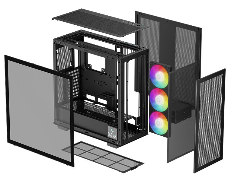 Skříň formátu Middle Tower s průhlednou bočnicí nabízí tři 2,5" pozice pro SSD disky a dvě 3,5" pozice pro pevné disky. Na horním panelu se nachází čtyři porty USB 3.0, jeden port USB-C, kombinovaný port sluchátek a mikrofonu a tlačítko na změnu LED podsvícení. Skříň je vybavena třemi 140 mm ventilátory s ARGB podsvícením. Důmyslné řešení umožňuje pohodlné umístění až 420 mm dlouhého výměníku vodního chlazení na přední, horní či boční straně. Ve skříni je dostatek prostoru pro chladič CPU do výšky až 132 mm a grafickou kartu o délce 480 mm. Zajisté potěší také digitální displej na boční straně, který umožňuje sledovat informace o kritických teplotách CPU nebo GPU. Skříň je dodávána bez zdroje.