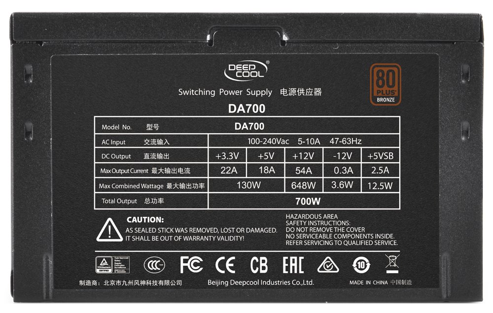 Napájecí zdroj o výkonu 700 W je osazen tichým a přitom výkonným 120 mm ventilátorem. Zdroj splňuje certifikaci 80PLUS Bronze.