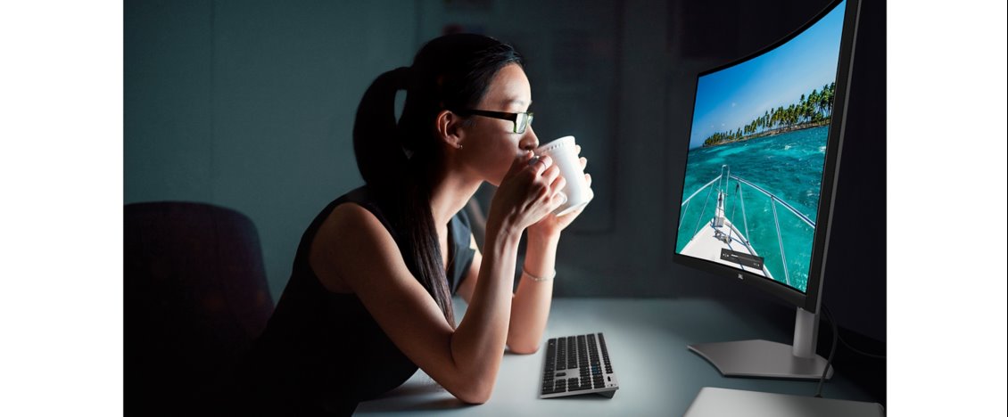 34" zakřivená ultraširoká WQHD (3440 x 1440) obrazovka navržená tak, abyste se ponořili do jakéhokoli úkolu, který si zvolíte. S připojením USB-C a vestavěnými reproduktory.