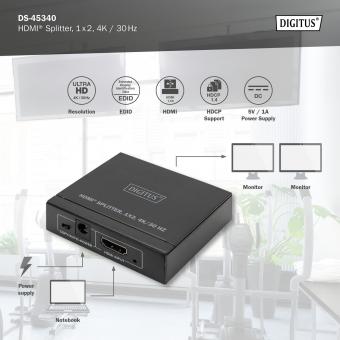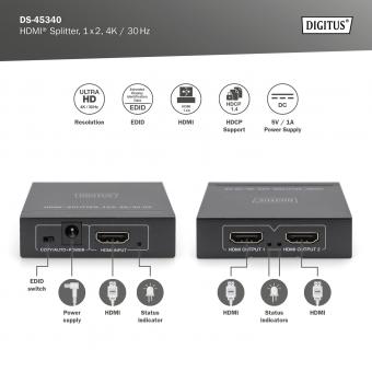 4K HDMI Splitter, 1x2 4K/30Hz, černá