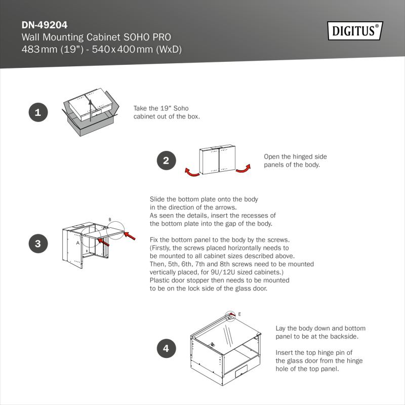 chtít. Nástěnné skříně dostupné ve čtyřech rackových jednotkách (4
