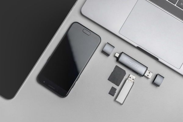 Počítače a kancelář  Notebooky a příslušenství  Příslušenství  DIGITUS dvojitá čtečka karet OTG (USB-C + USB 3.0) 1x SD, 1x MicroSD, 1x USB…