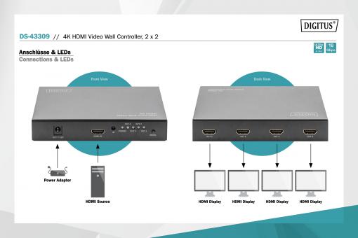 1 x 4K HDMI® video nástěnný ovladač, 2 x 2