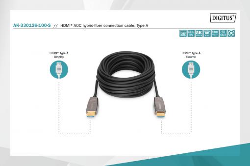 HDMI AOC hybridní připojovací kabel, typ A M/M, 10m, UHD 8K@60Hz,