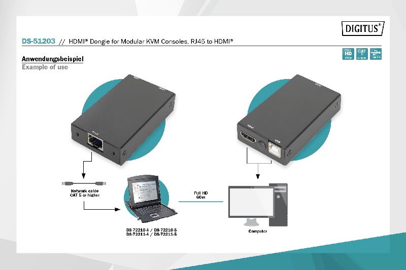 DIGITUS® HDMI dongle pro modulární konzoly KVM umožňuje vzdálené