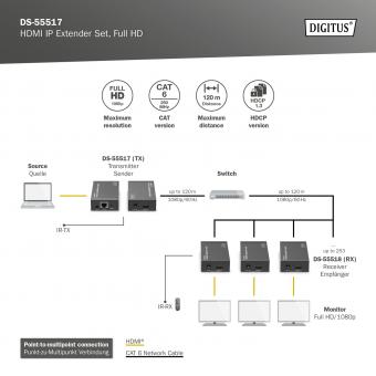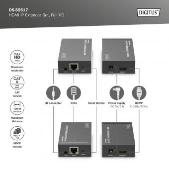 HDMI IP Video Extender Set, 120m Full HD, 1080p