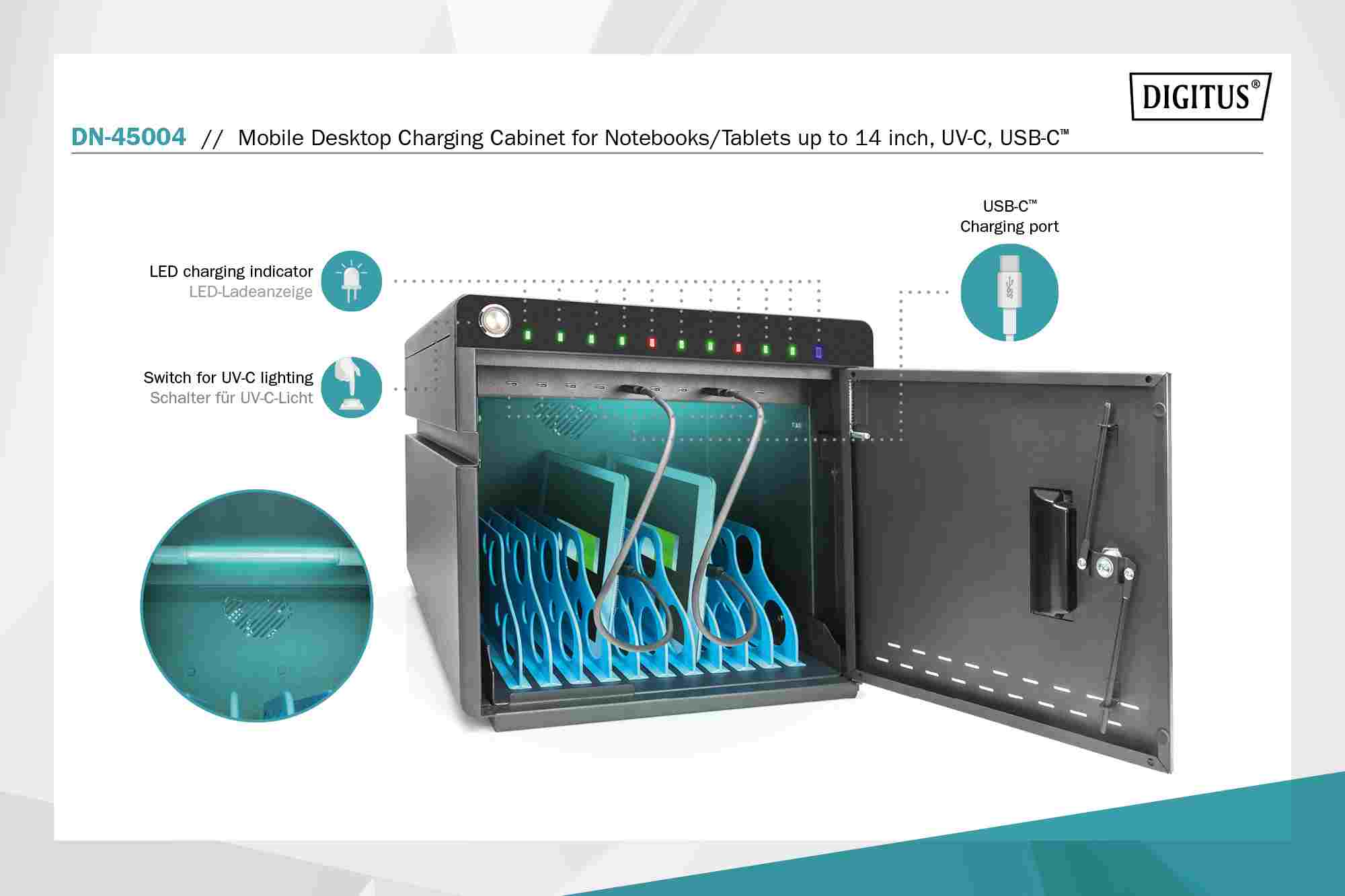 DIGITUS mobilní stolní nabíjecí skříňka pro notebooky/tablety do 14