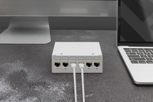 Modulární stolní patch panel, stíněný 6 portů, světle šedý