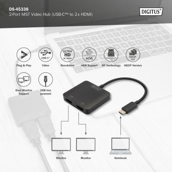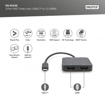 USB-C - 2x HDMI MST Video Hub DP 1.4, HDMI 2.0, 4K/60Hz
