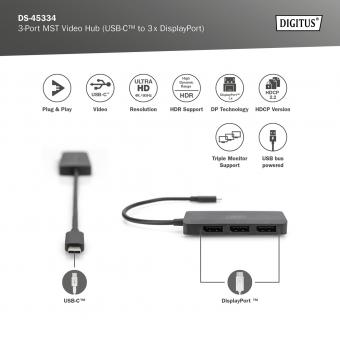 USB-C - 3x DP MST Video Hub DP 1.4, 4K/60Hz