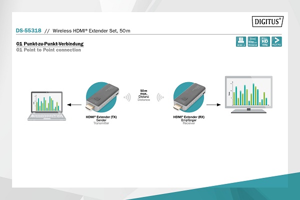 Se sadou Wireless HDMI Extender Set můžete bezdrátově přenášet HDMI