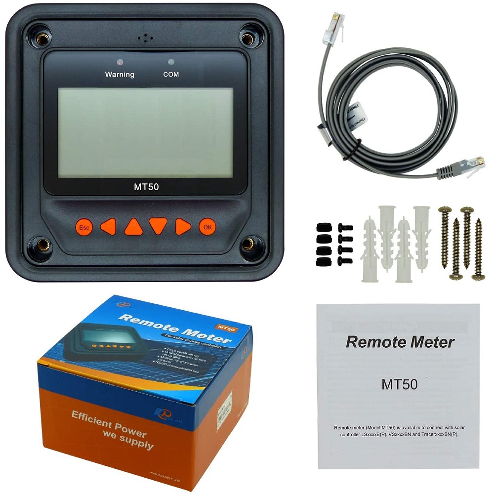 Externí displej Epever EPsolar MT50 funguje jako vzdálený ovladač pro solární regulátory EPsolar ze série XTRA, BN, A a LS (není kompatibilní s řadou DuoRacer). V reálném čase monitoruje a zobrazuje všechna důležitá data. Pomocí displeje přizpůsobíte provoz regulátoru podle vlastních potřeb, zapínáte a vypínáte připojená zařízení a jinou zátěž a nastavujete parametry nabíjení.