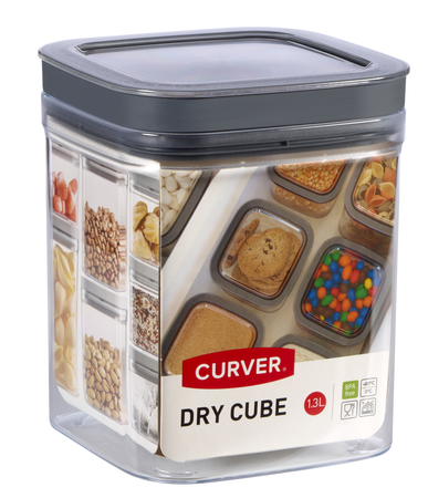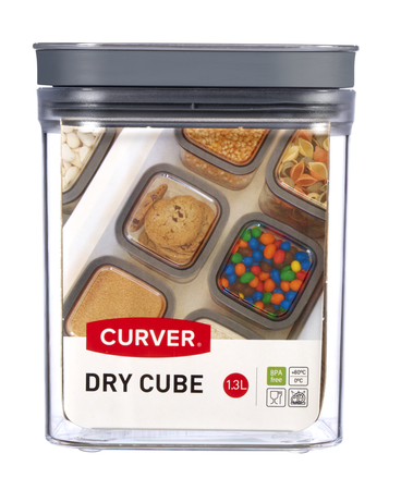 Průhledná plastová dóza Curver Dry Cube 1,3L se stane praktickým pomocníkem při skladování potravin. Vysypte do ní bonbóny pro děti, využijte ji na koření, těstoviny, sušené ovoce, oříšky nebo třeba na čaj, ať už sypaný nebo v sáčcích. Díky silikonovému těsnění se vám obsah dózy nevysype.