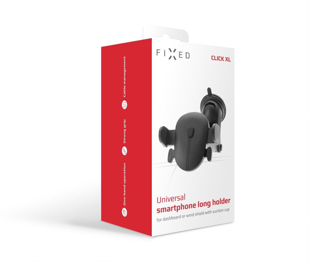 Univerzální držák FIXED Click XL je ideální volbou pro uchycení vašeho mobilního telefonu v autě. Držák je vybaven extra silným přísavným podstavcem, který slouží pro uchyycení na čelní sklo. Bez problémů vydrží všechny otřesy způsobené jízdou a zvládne i opakované uchycení.