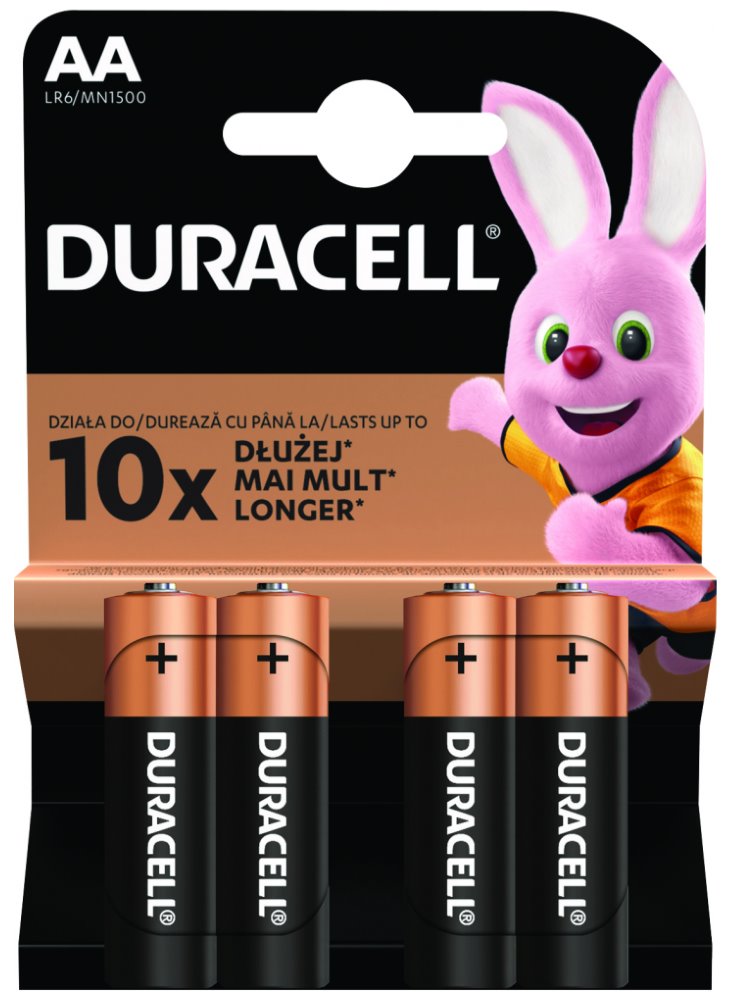 Baterie Duracell Basic jsou víceúčelové alkalické baterie vhodné pro běžné přístroje. Dokonalé uzavření horní části nylonem pomáhá předcházet vytečení baterií. Technologie Duralock udržuje nepoužívané baterie Duracell při běžném skladování jako nové a nabité po dobu až 10 let. Balení obsahuje 4 kusy baterií.