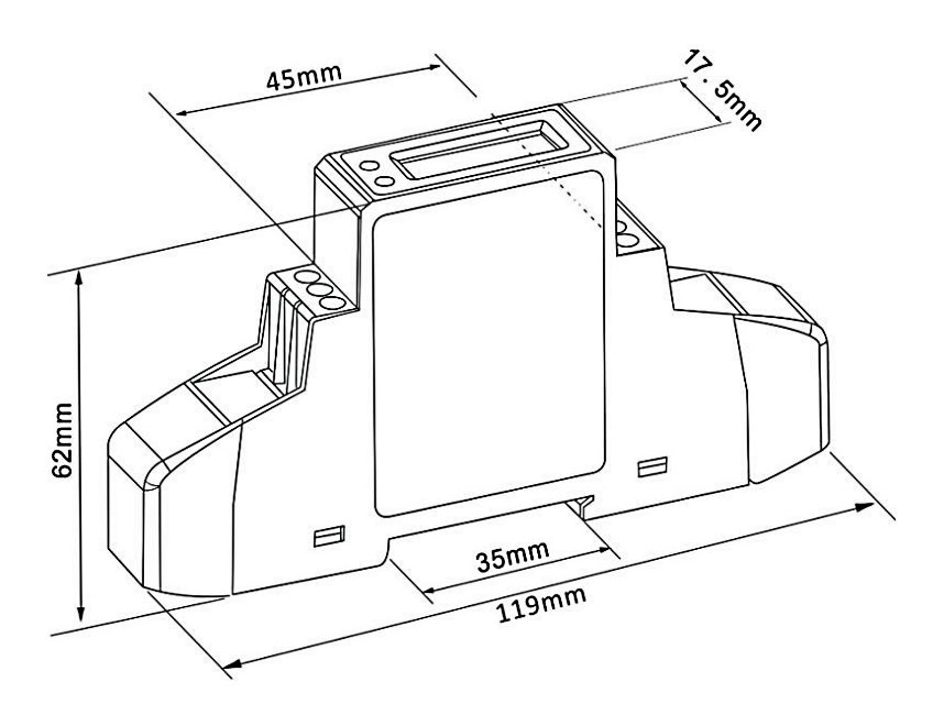 Jednofázový elektroměr SDM120M Modbus s RS485 rozhraním a podsvíceným LCD displejem, který zobrazuje důležité informace.