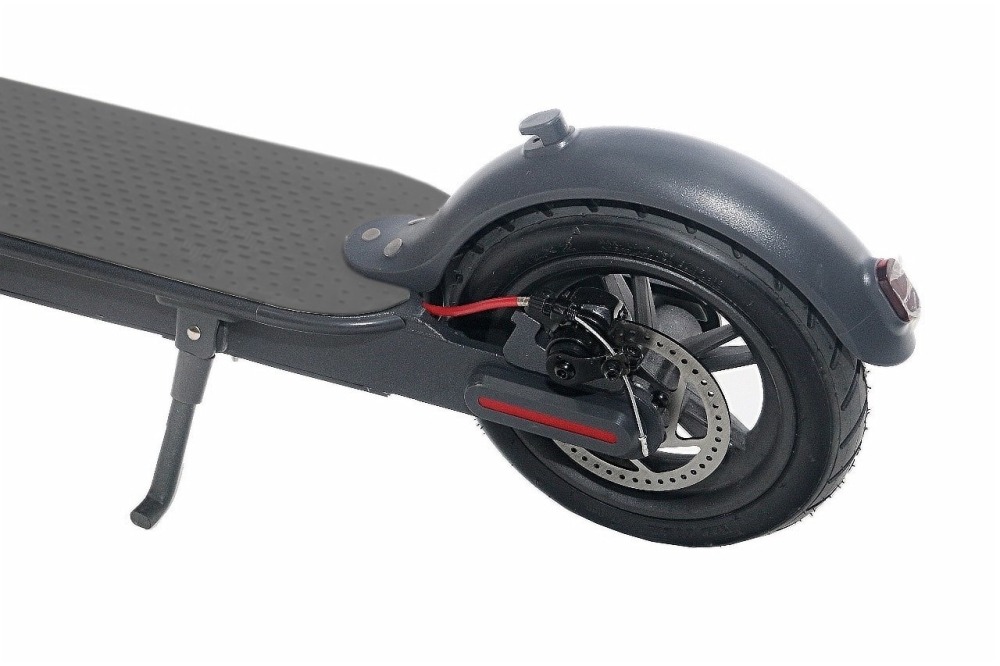 Koloběžka je skladná, kompaktní a má velice nízkou hmotnost 13 kg. I přes tuto skutečnost se stále pyšní extrémně robustní konstrukcí s neuvěřitelnou nosností až 120 kg, takže je elektroběžka koncipovaná pro starší děti i dospělé jedince. Skládací mechanismus zajistí pohodlné uskladnění i přepravu v autě či v MHD. Pod nášlapnou plochou se nachází 36V Li-Ion baterie se skvělou kapacitou 360 Wh (10 Ah), která zajistí solidní dojezd až 40 km na 1 nabití. Nabíjecí konektor naleznete na koloběžce z boku pod nášlapem, kdy plné dobití baterie trvá maximálně 5 hodin.