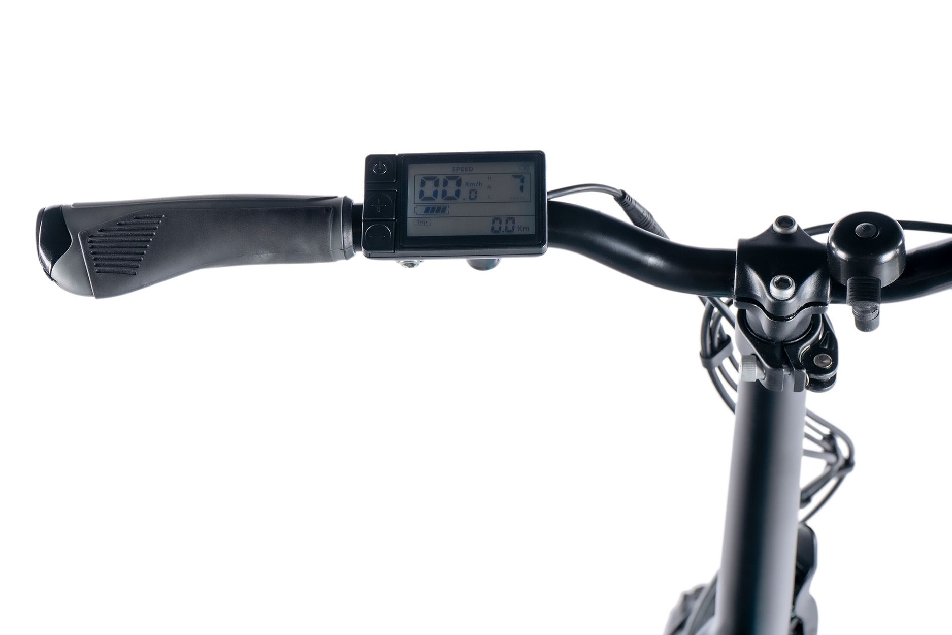 Kolo ovládáte tlačítkovým ovladačem na řídítkách. Přehledný LCD displej vás informuje o ujetých kilometrech, aktuální, průměrné a maximální rychlosti a stavu baterie. Navíc je podsvícený, proto vidíte veškeré informace i v noci.