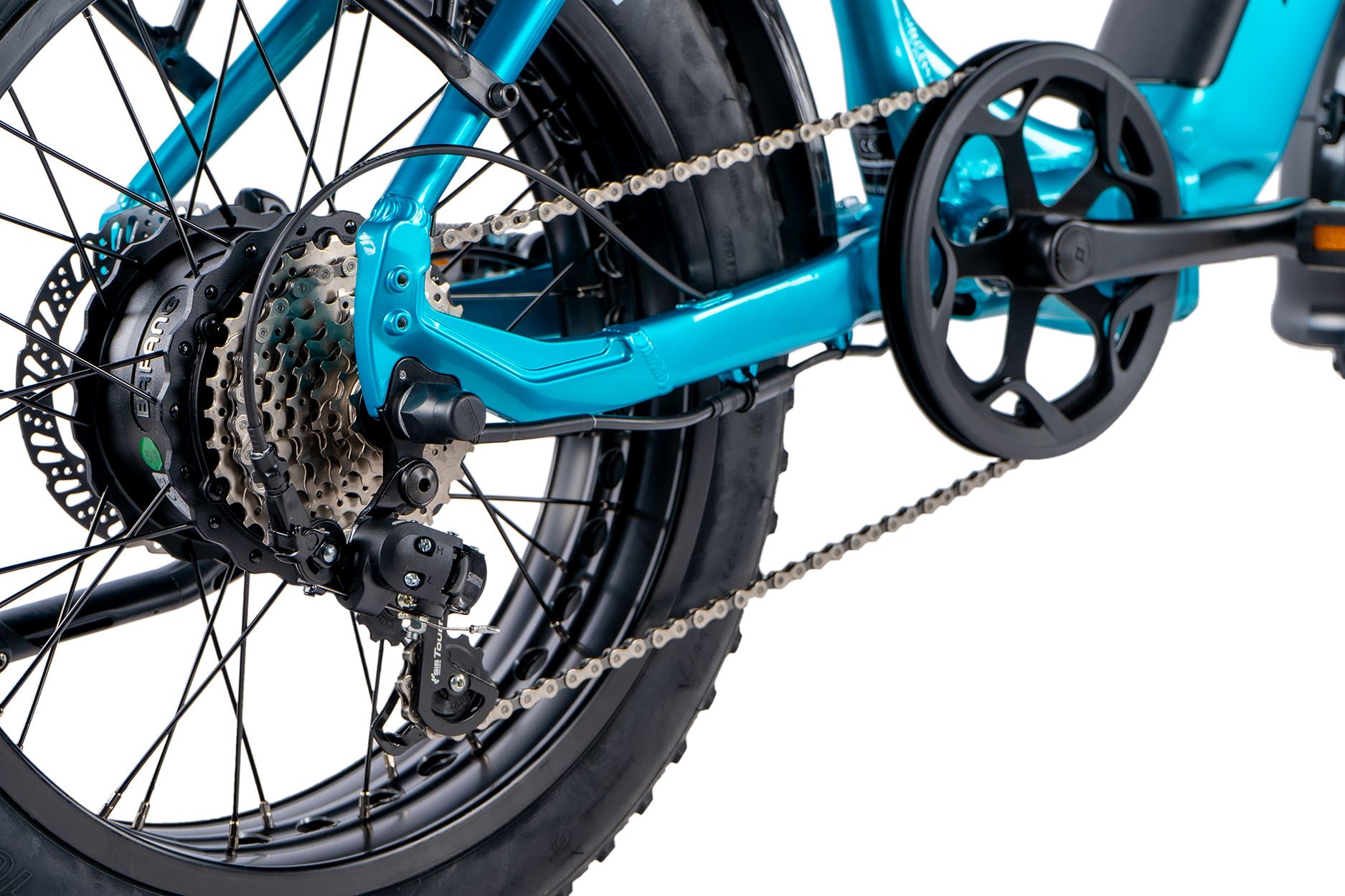 Zadní motor Bafang zajišťuje plynulý provoz kola. Jeho nominální výkon je 250 W, ale může dosahovat hodnoty až 350 W. Díky tichému chodu si málokdo všimne, že se jedná o elektrokolo, které vám pomáhá v jízdě.