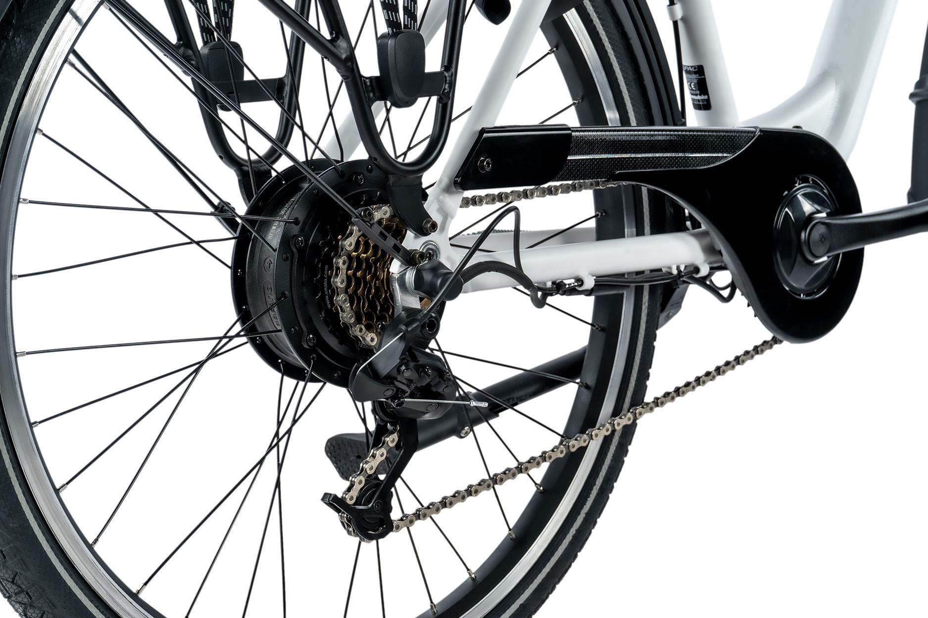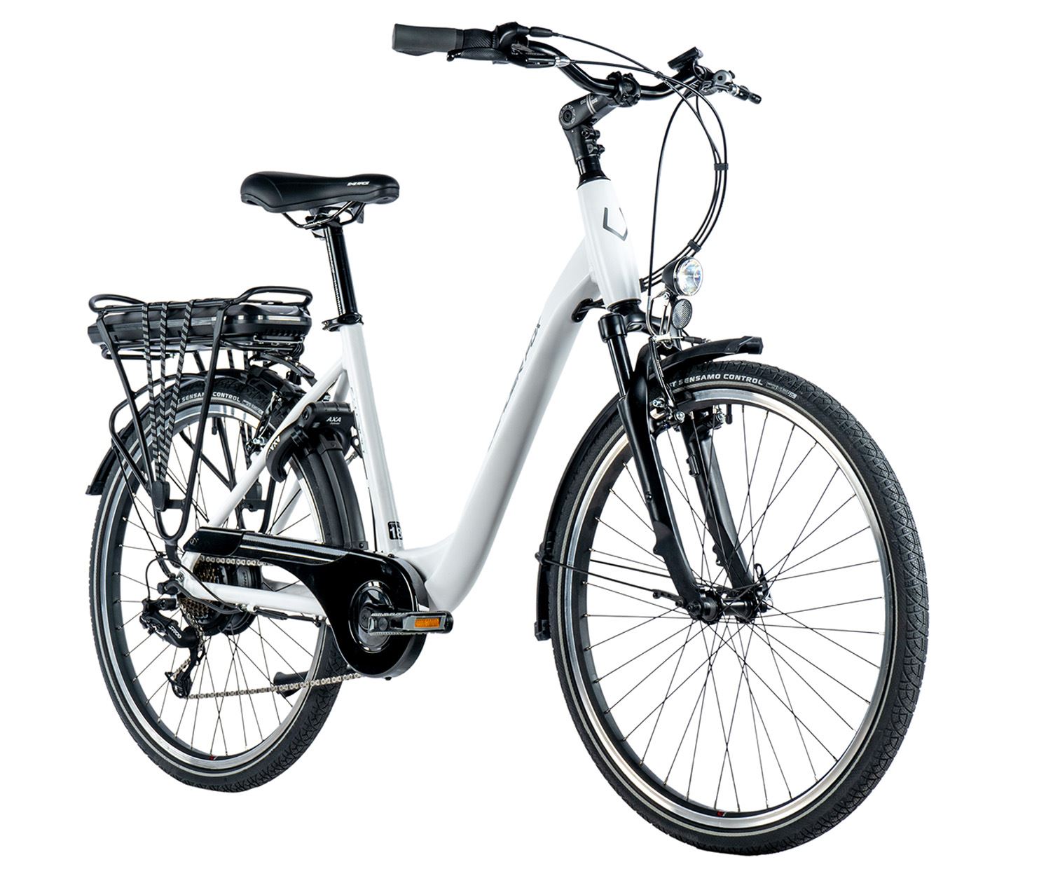 Kvalitní přední LED osvětlení vám posvítí na cestu i za tmy. Pokud cestujete s taškou, jistě oceníte pevný nosič na zadní části kola.