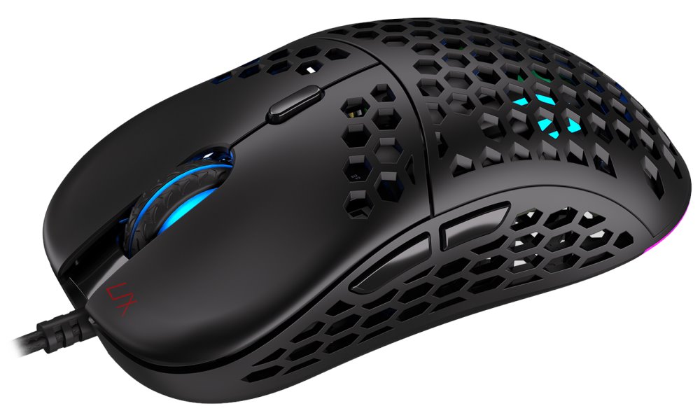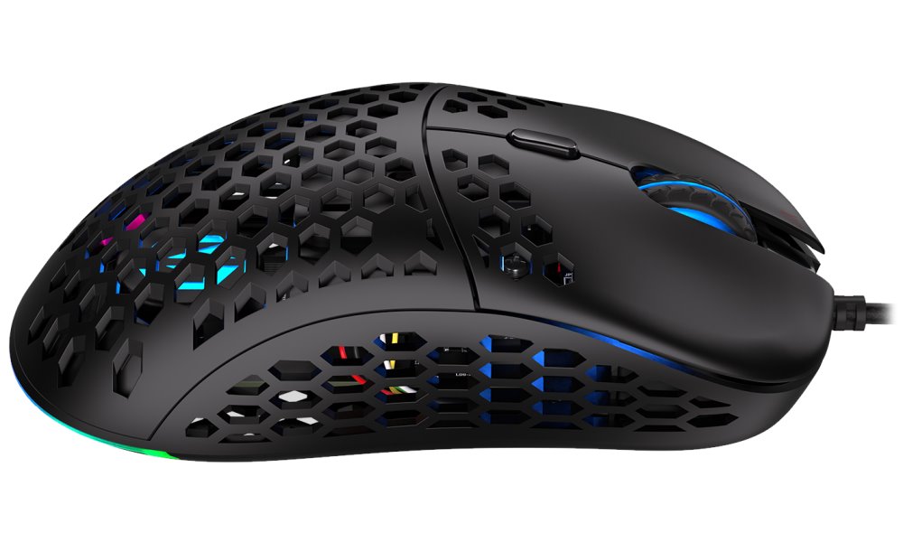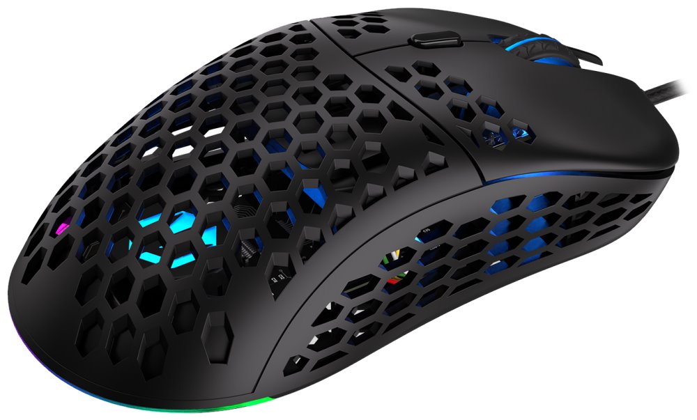 Ultralehká herní myš disponující 6 programovatelnými tlačítky a vysoce přesným optickým senzorem Pixart PMW3325 s rozlišením až 8000 dpi. Herní design doplňuje adresovatelné RGB podsvícení. Kvalitní spínače Kailh GM 4.0 vydrží více než 60 milionů kliků. Připojení je realizováno skrze opletený USB kabel o délce 1,8 m.
