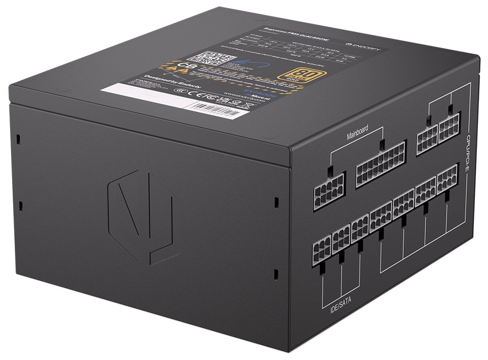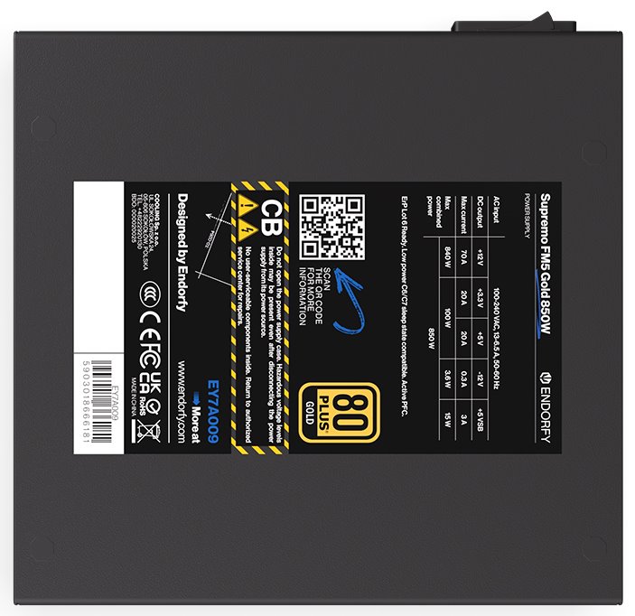 Napájecí zdroj o výkonu 850 W je osazen tichým, 120 mm velkým ventilátorem. Modulární kabeláž ušetří cenné místo ve skříni. Účinnost zdroje je 80PLUS Gold.