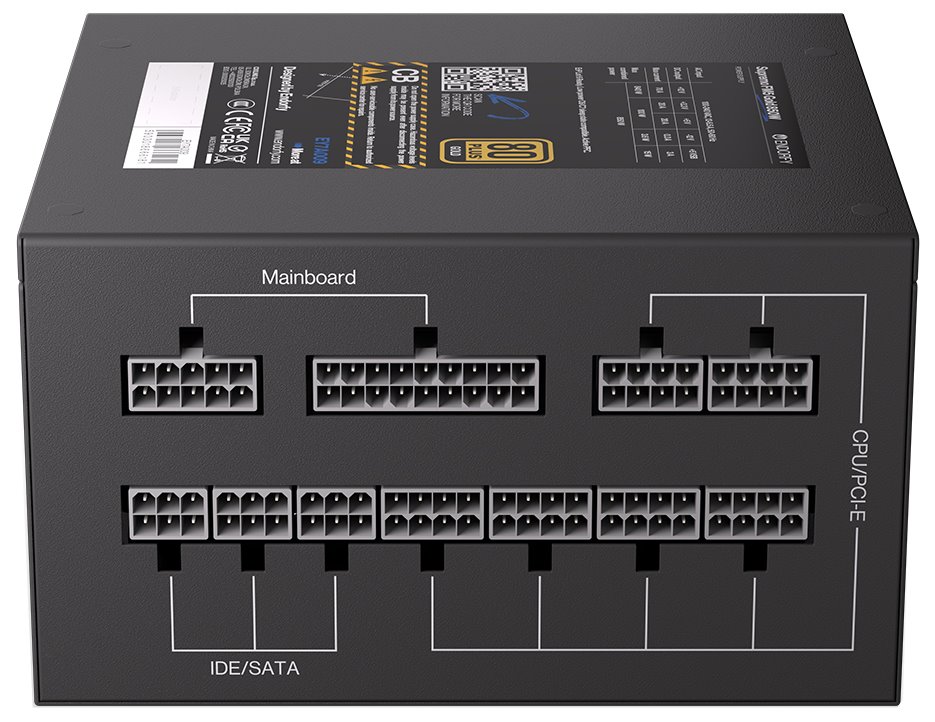 Napájecí konektory: 1x ATX 24pin, 2x EPS 4+4pin, 4x PCIe 6+2pin, 8x SATA, 1x molex